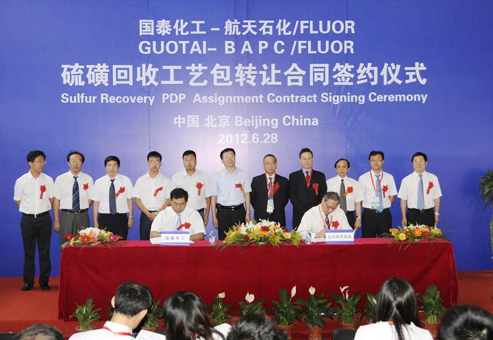 6月28日,北京航天石化與鄂爾多斯市國泰化工有限公司就美國福陸公司硫回收工藝包轉(zhuǎn)讓合同,進行了簽約儀式,儀式在北京中國國際展覽中心舉行,《中國化工報》以專題報道的形式,在7月3日二版科技創(chuàng)新版面對簽約相關(guān)事項進行了頭條刊登。