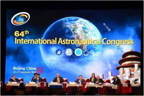 2013年9月23日至27日,第64屆國(guó)際宇航大會(huì)在國(guó)家會(huì)議中心隆重召開(kāi)。國(guó)家副主席李源潮代表習(xí)近平主席和中國(guó)政府致詞,全國(guó)政協(xié)副主席韓啟德出席,中國(guó)航天科技集團(tuán)公司許達(dá)哲董事長(zhǎng)主持開(kāi)幕式,來(lái)自美國(guó)、歐洲、俄羅斯、日本、中國(guó)、印度的航天局長(zhǎng)齊聚一堂,74個(gè)國(guó)家和地區(qū)的3600余名航天精英參會(huì)。
