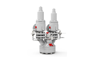 ● 三通流路設(shè)計, 一個工位安裝兩個相同的安全閥,其中一個在線進行超壓保護,而另一個則作為維修備用
